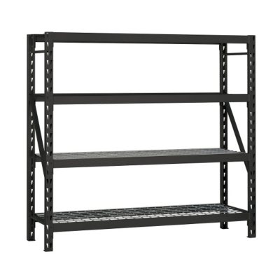 HEAVY-DUTY Welded Steel Shelving Reinforced 12 gauge steel shelves with 2000 lbs. capacity per shelf. 2” x 2” x 3/16” corner angles have footpads with anchor. 72” overall height with 3-1/2” bottom shelf under-clearance. Ships set up and ready for immediate use. ... Fetch Here